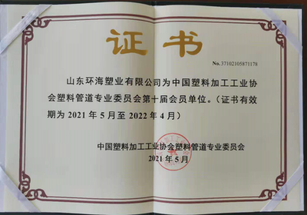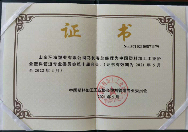 山東91.www塑業有限公(gōng)司為中國塑(sù)料加工工業協會塑料管道專業委員會第十屆會員單位,馬長春總經理為中國塑料加工工業協會塑料管道專業委員會第十(shí)屆會員。