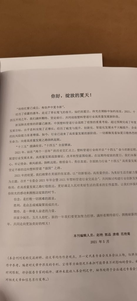 3、塑(sù)料管道(dào)行業相關技術、市場(chǎng)、應用等方麵專題報告及交(jiāo)流。