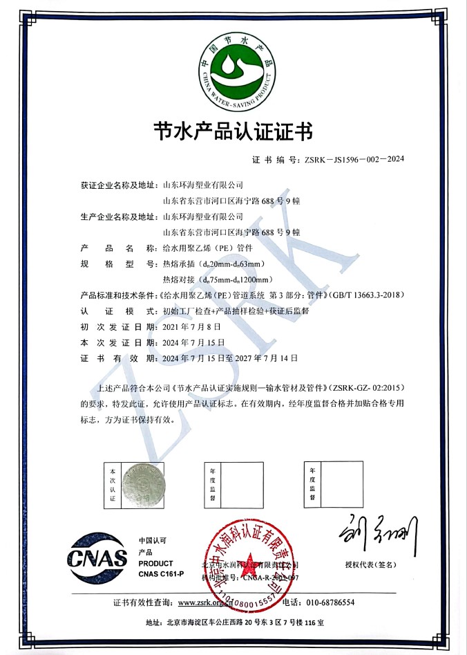 節水產品認證證書