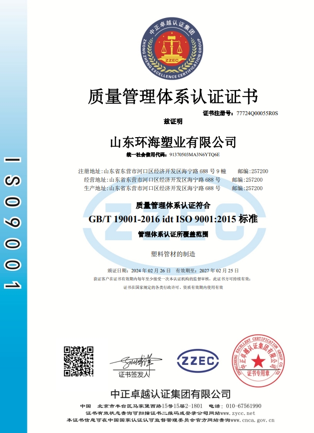 質量(liàng)管理體係認證證書